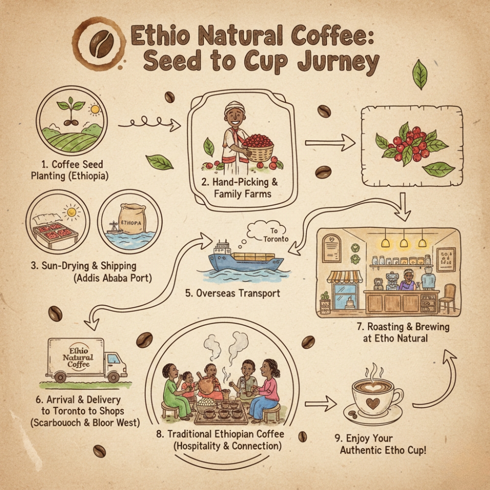 Ethio Natural Coffee Shop was born from a passion for sharing the rich heritage of Ethiopian coffee. Our beans are sourced directly from the finest family-owned farms in Ethiopia, the very birthplace of coffee.